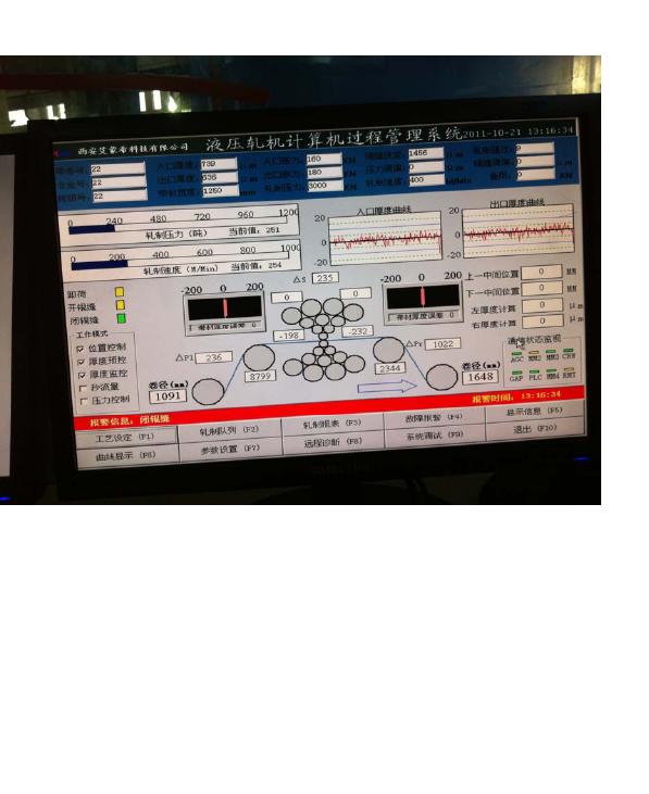 我公司為無錫碩放不銹鋼有限公司提供的1450mm20輥可逆高速軋機AGC系統、CROWN、擦拭系統于2011年10月28日順利驗收。成品精度0.250±0.003mm,軋制速度600M/Min。系統設計水平處于國內領先水平,同等于國外進口20輥軋機AGC系統、CROWN系統。AGC與交流傳動系統、PLC過程自動化工藝系統實現工業以太網絡連接,實現軋機自動降速、準確停車。張力、速度、厚度等工藝參數自動給定,系統采用流量控制、帶頭/帶尾5M自動進入目標厚度。大大提高軋機運行時間,實現產量高、質量高、成品率高 。該機組是我國自主設計目前唯一可達到軋制速度600M/Min的20輥1450mm不銹鋼寬板軋機。上下凸度在線動態調節、中間輥在線動態抽動。