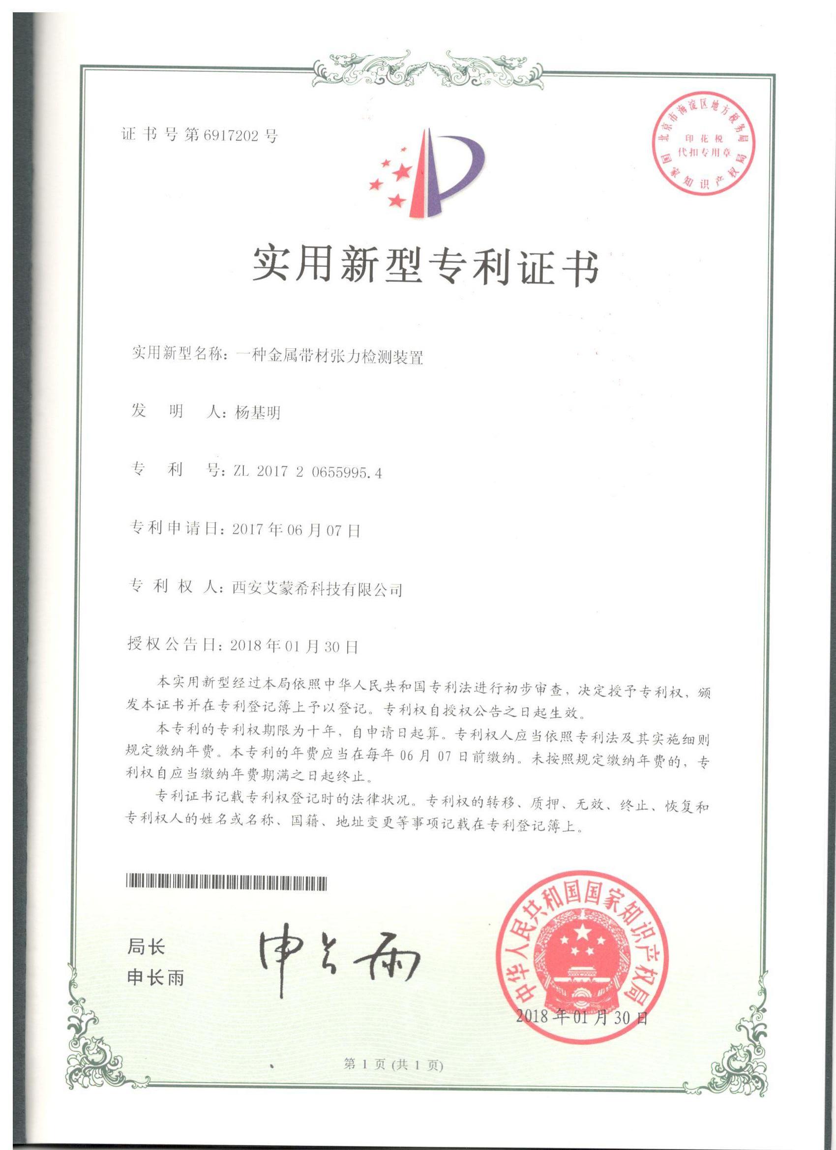 實用新型:一種金屬帶材張力檢測裝置
